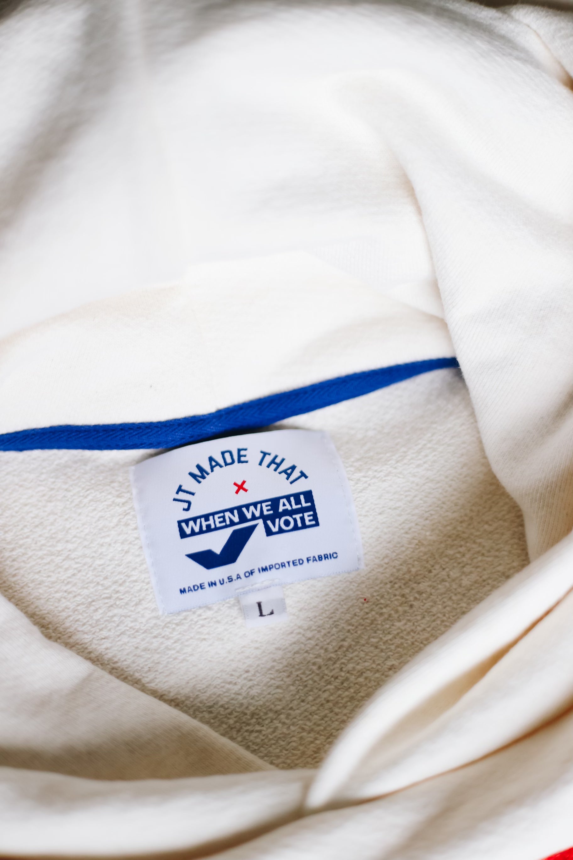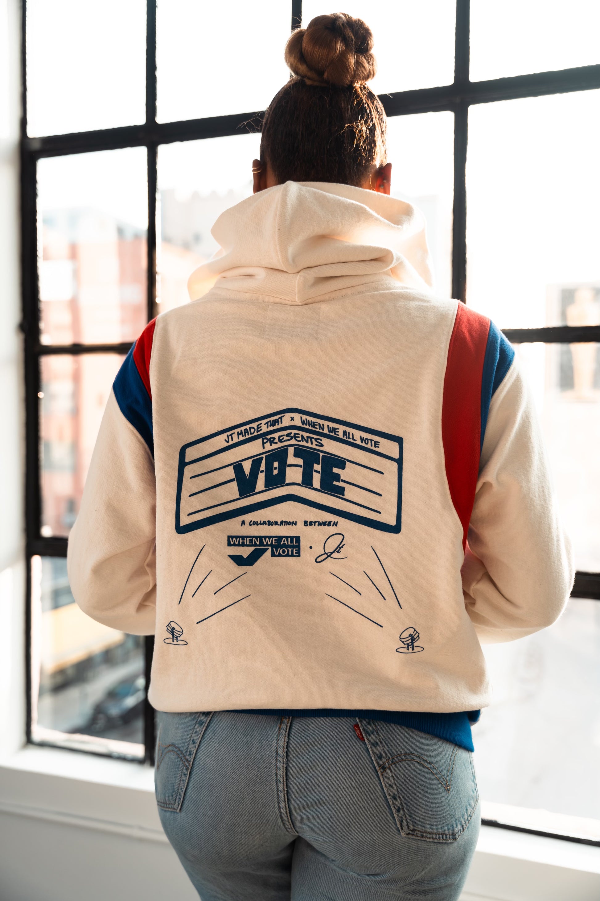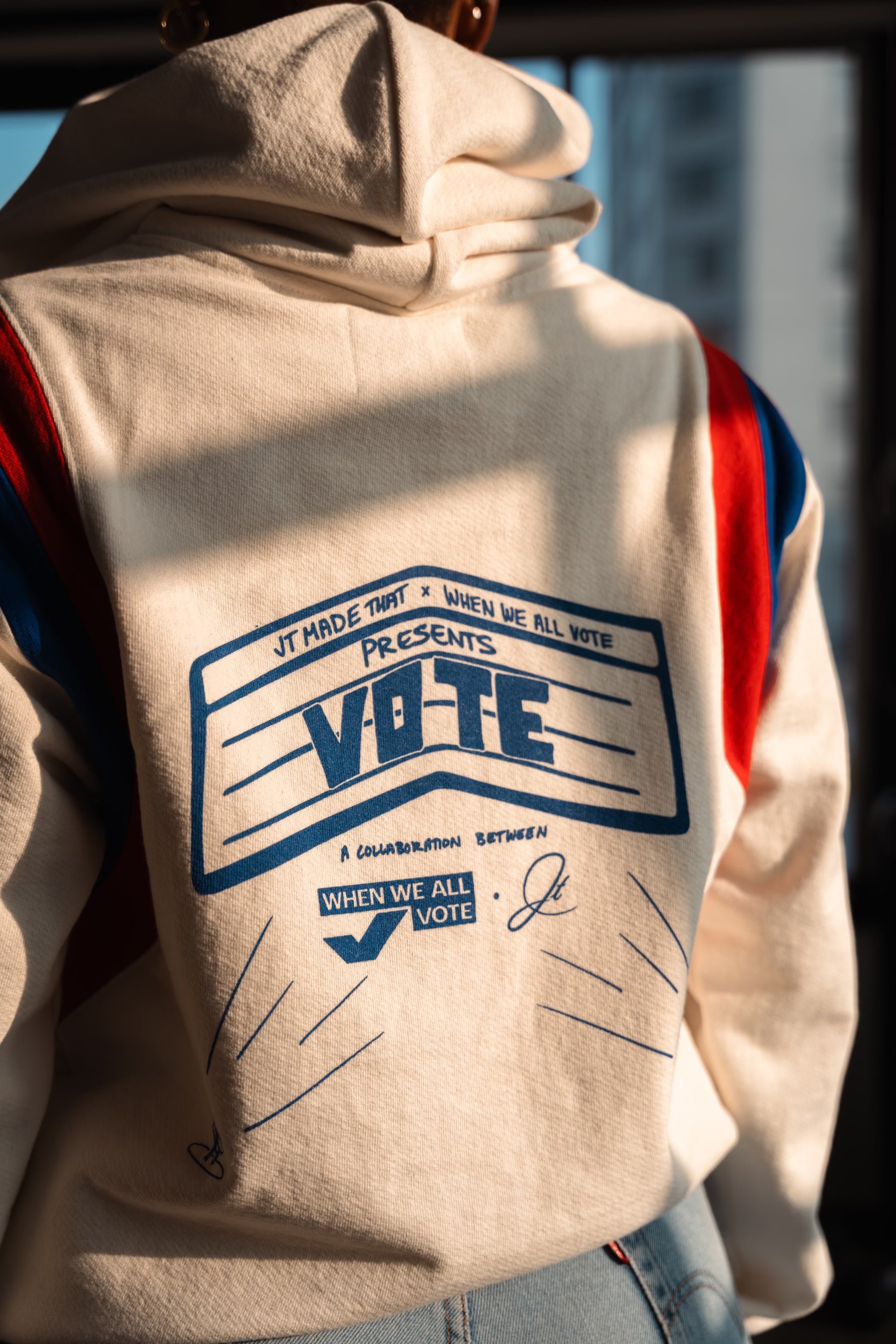 JT Made That has designed this hoodie in collaboration with Michelle Obama's national, nonpartisan voting initiative, When We All Vote. Together, we are dedicated to empowering people to take action through voting, advocating for their rights, and holding their elected officials accountable. For every I Voted Hoodie sold, we make a donation to When We All Vote. Grab your hoodie and wear it to the polls!